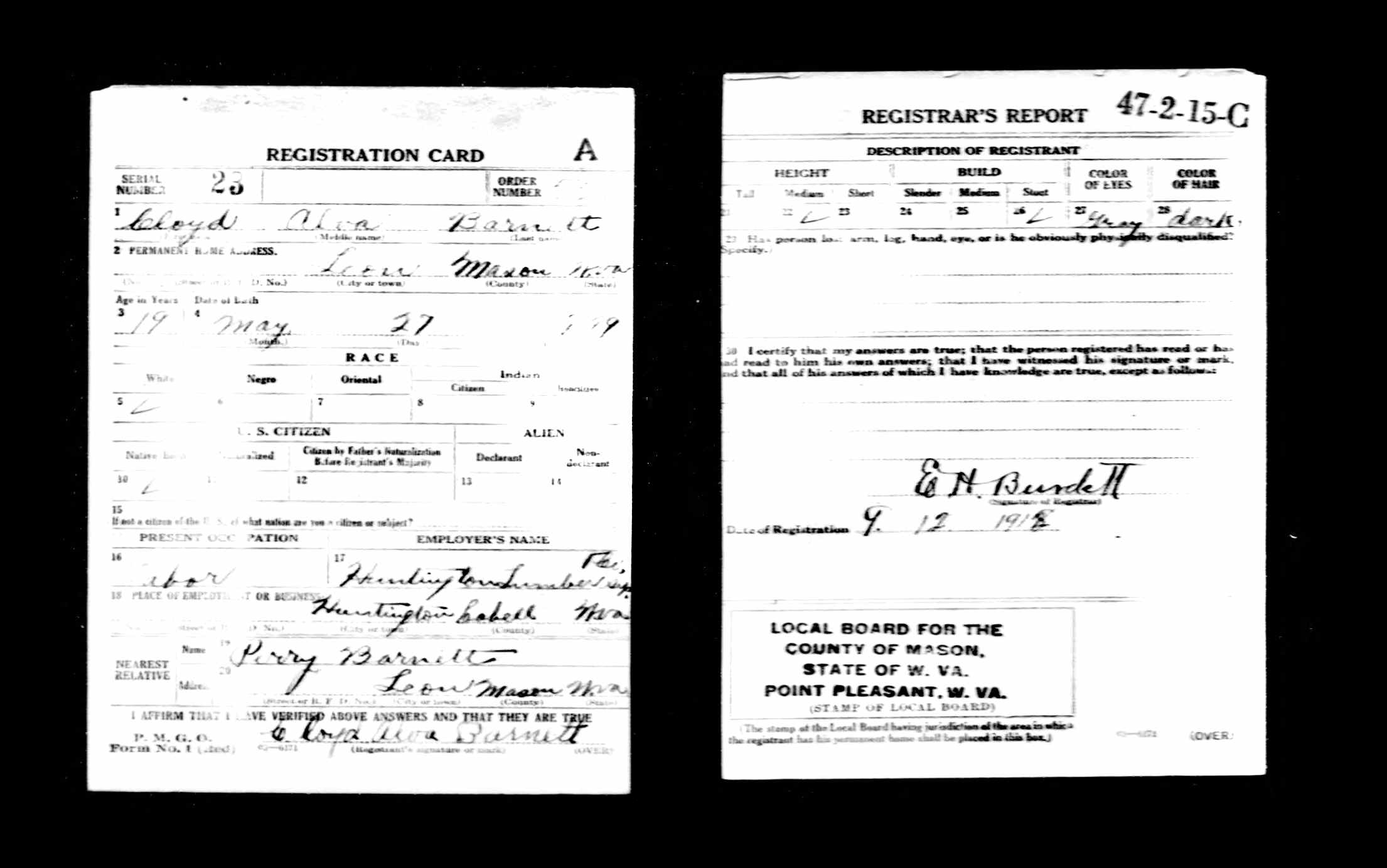 | Cloyd Alva Barnette - U.S., World War I Draft Registration Cards, 1917-1918 |
