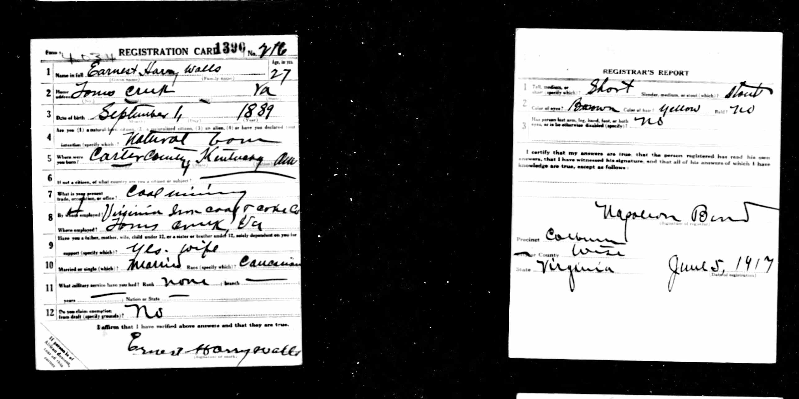| Earnest Harry Walls - U.S., World War I Draft Registration Cards, 1917-1918 |