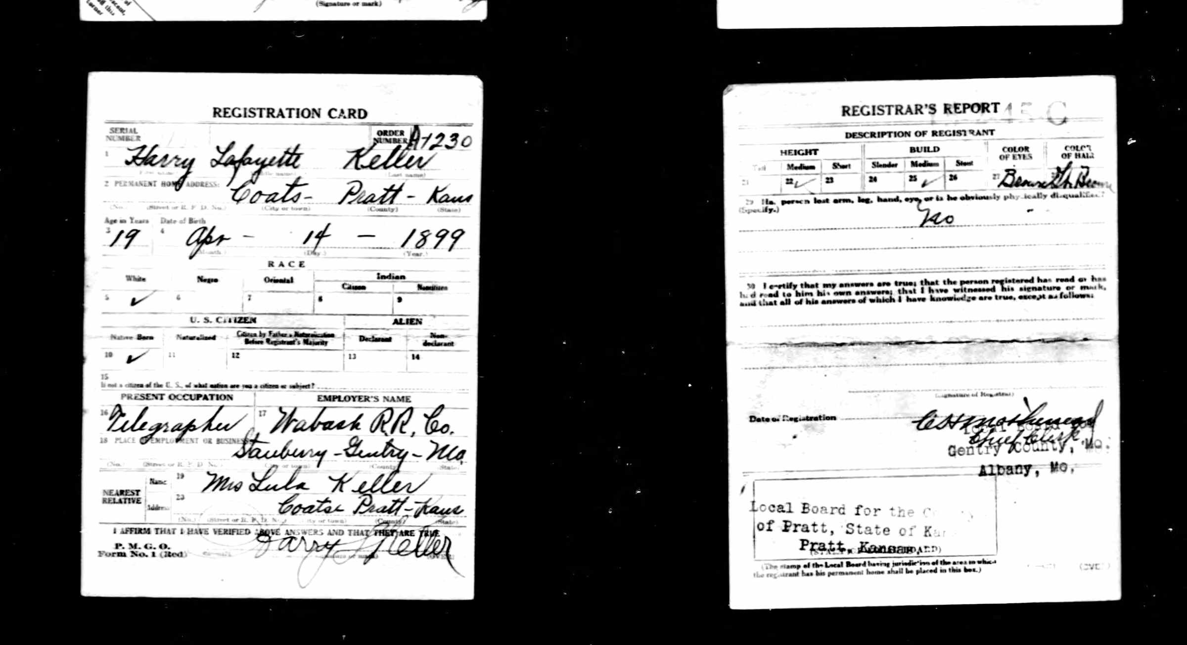 Harry L Keller - U.S., World War I Draft Registration Cards, 1917-1918