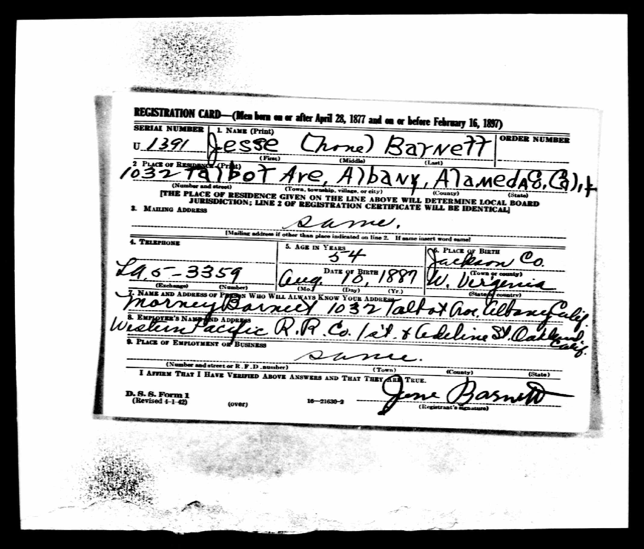 Jesse Barnett - U.S. World War II Draft Registration Cards, 1942