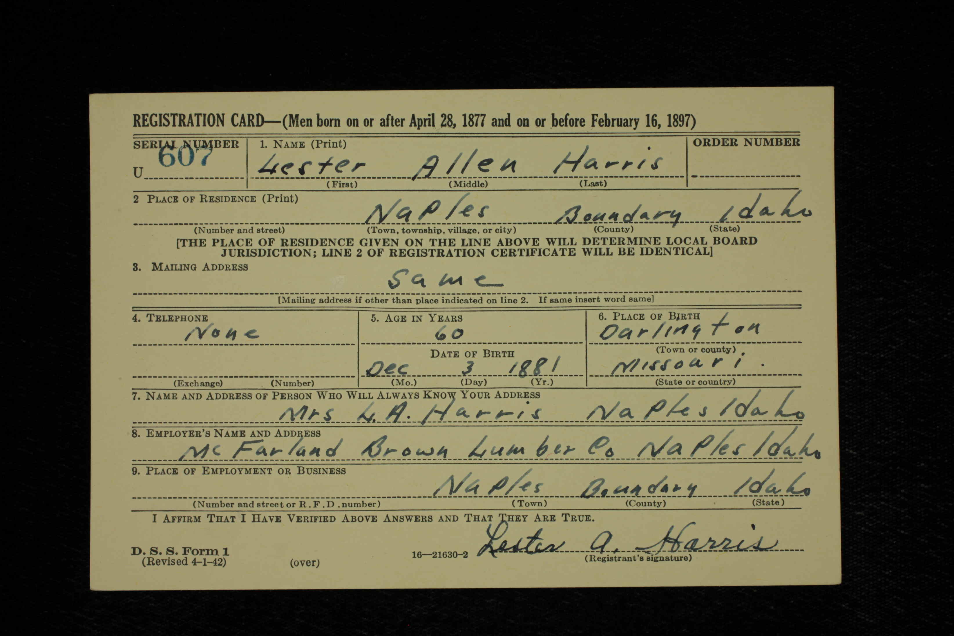 | Lester A Harris - U.S., World War II Draft Registration Cards, 1942 |