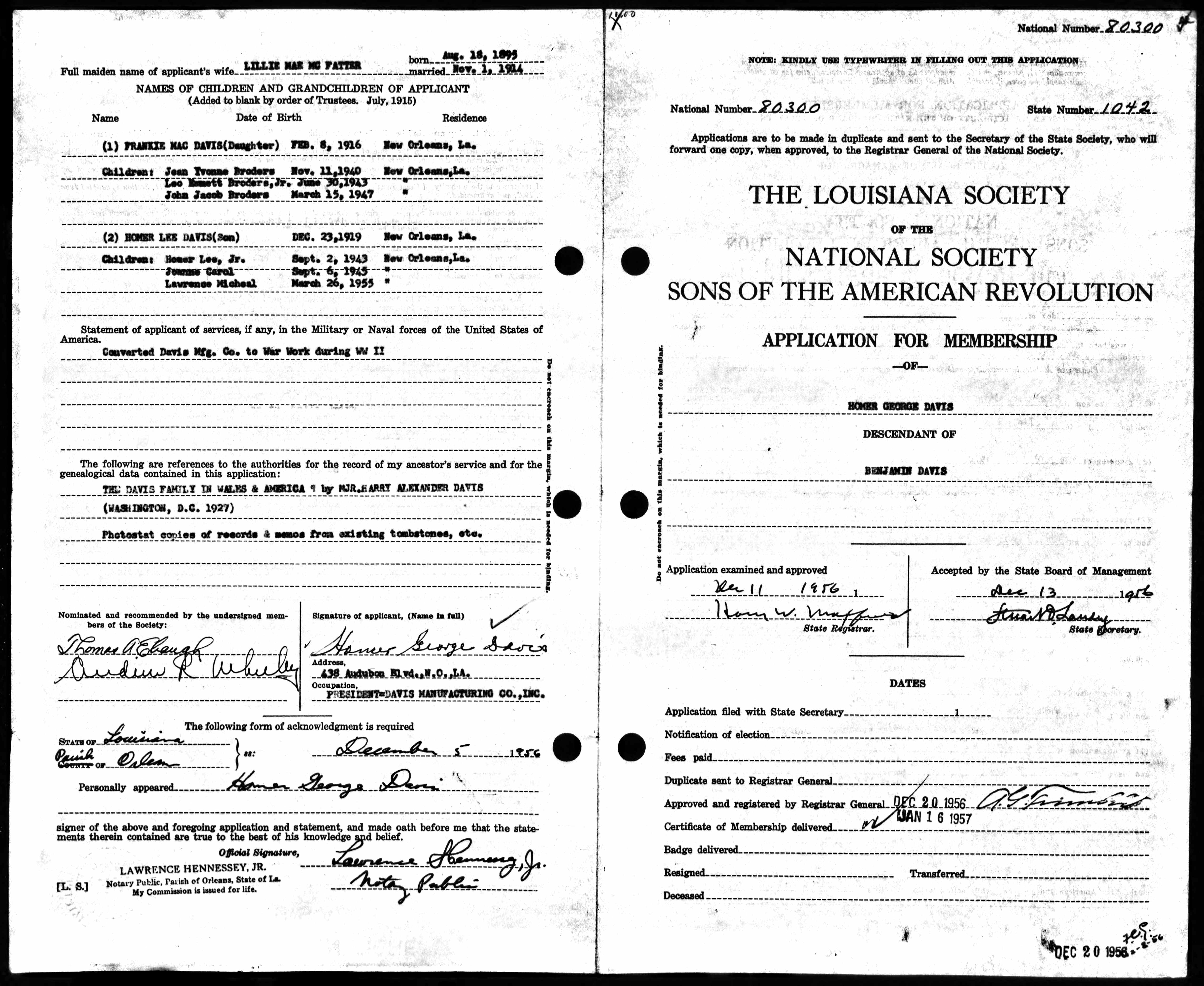 | Morgan David Davis - U.S., Sons of the American Revolution Membership Applications, 1889-1970 |