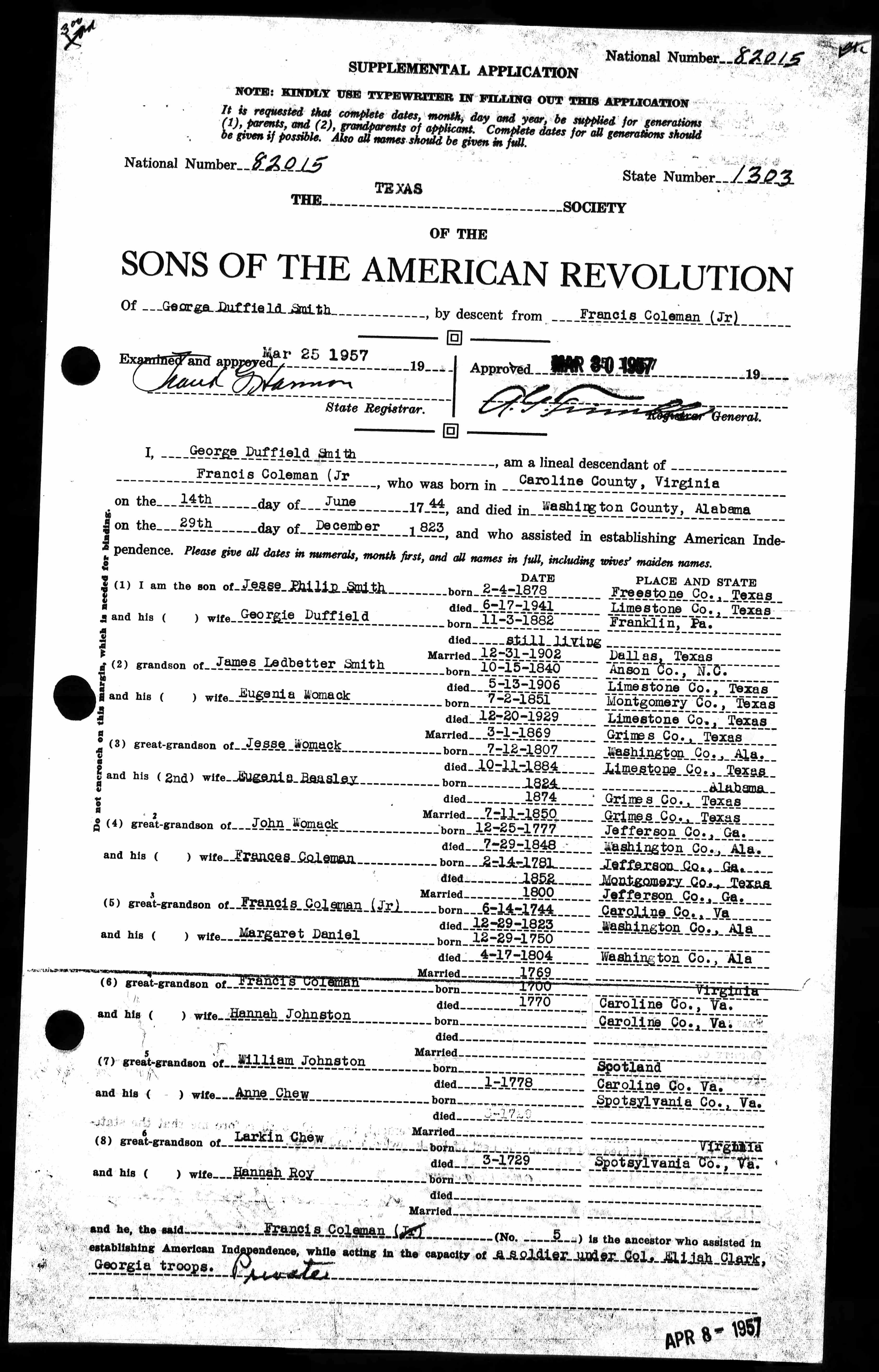 | William Johnston - U.S., Sons of the American Revolution Membership Applications, 1889-1970 |