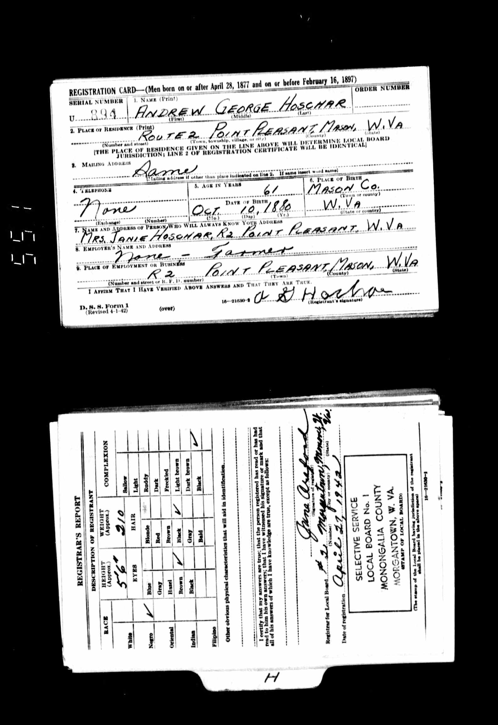 Andrew George Hoschar - U.S., World War II Draft Registration Cards, 1942