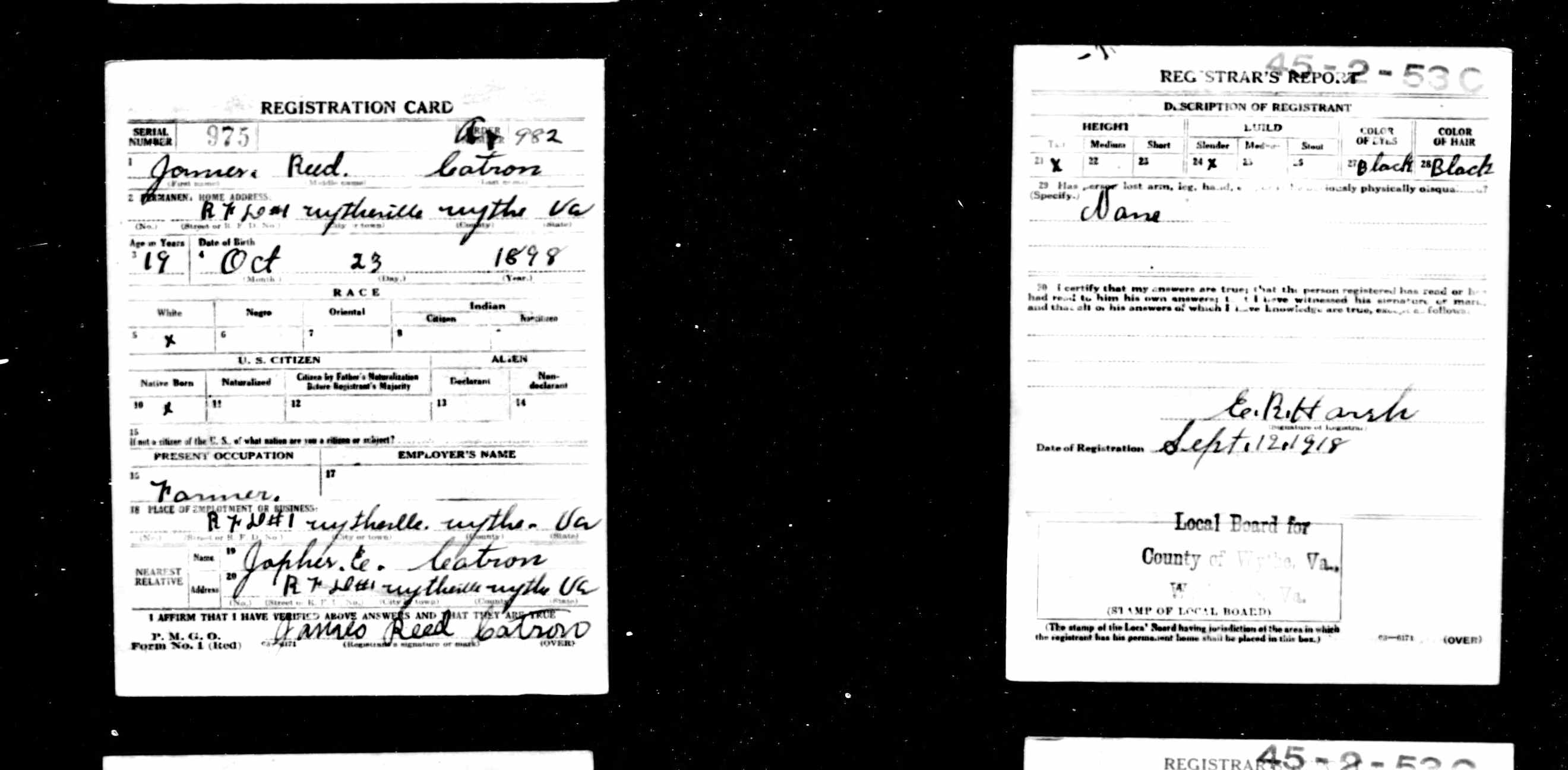 | James Reed Catron - U.S., World War I Draft Registration Cards, 1917-1918 |