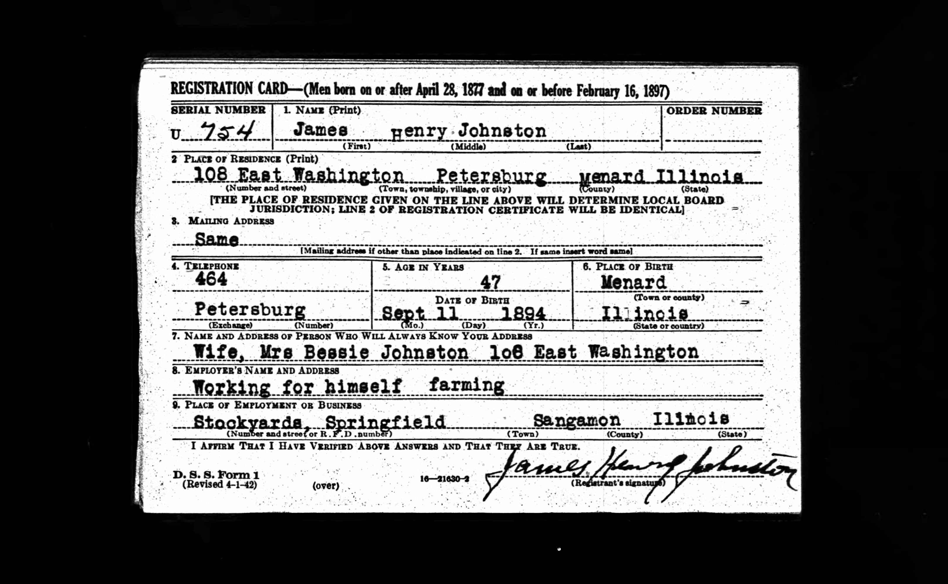 | James Henry Johnston - U.S., World War II Draft Registration Cards, 1942 |